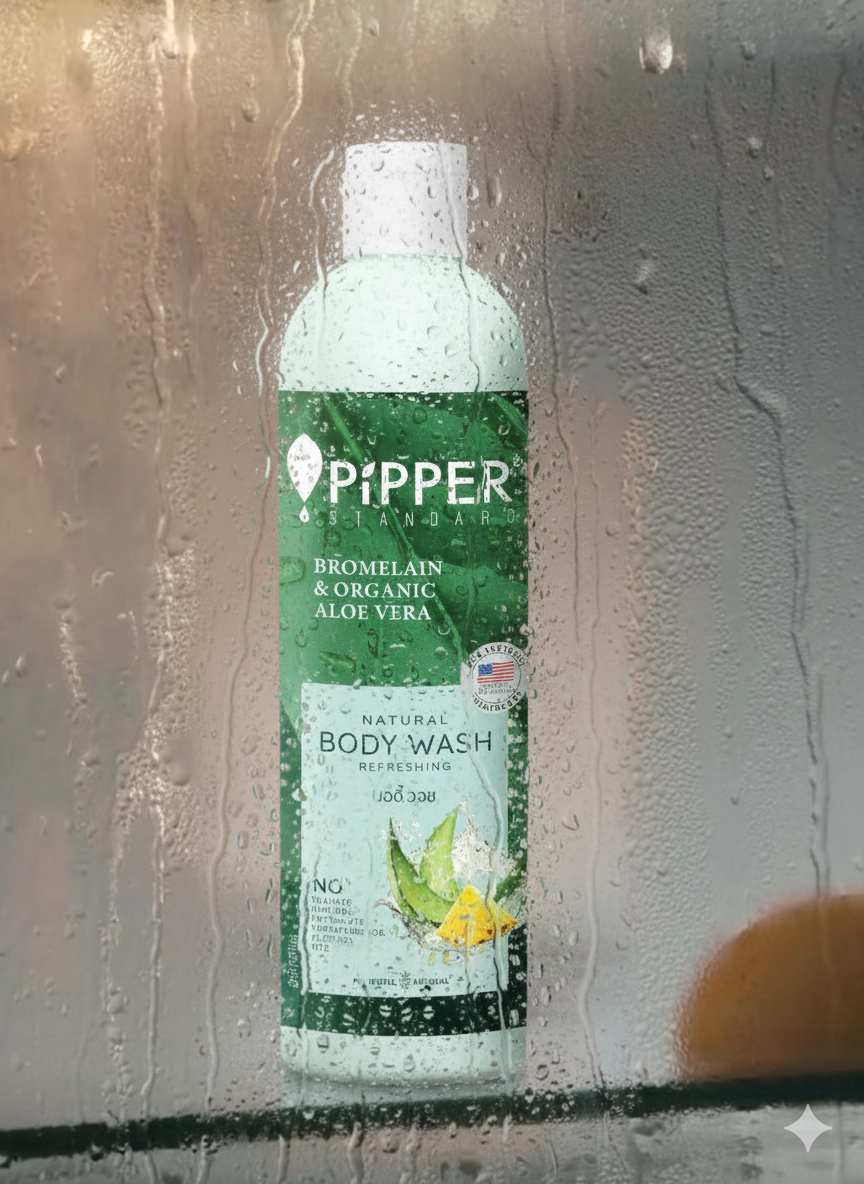 พิพเพอร์ สแตนดาร์ด ครีมอาบน้ำ ที่ช่วยให้ผิวสะอาดอย่างอ่อนโยน ด้วยโบรมีเลน แอคทีฟ แตกต่างจากเจลอาบน้ำ หรือ ครีมอาบน้ำ โดยทั่วไป ครีมอาบน้ำ พิพเพอร์ สแตนดาร์ด เป็น ครีม อาบ น้ำ ที่ เพิ่มความชุ่มชื้น ช่วยทำให้ผิวกระจ่างใส ไม่แห้งกร้าน ผิวเนียนนุ่ม น่าสัมผัส เพราะอุดมไปด้วยวิตามินบีและอี จากโจโจ้บาออยล์ เติมความชุ่มชื้น ช่วยบำรุงผิวให้เนียนนุ่ม กระจ่างใสอย่างเป็นธรรมชาติ ด้วย ออแกนิก อะโลเวร่า ปราศจากซัลเฟต, พาราเบน, สี และสารที่ก่อให้เกิดภูมิแพ้ ผิวแห้งแพ้ง่ายก็สามารถใช้ได้ อ่อนโยนต่อทุกสภาพผิว กลิ่นหอม อ่อนๆ ไม่ทำให้เกิดการระคายเคือง ผลิตภัณฑ์ ผ่านการทดสอบการระคายเคืองผิวจากแพทย์ผิวหนังชั้นนำ
