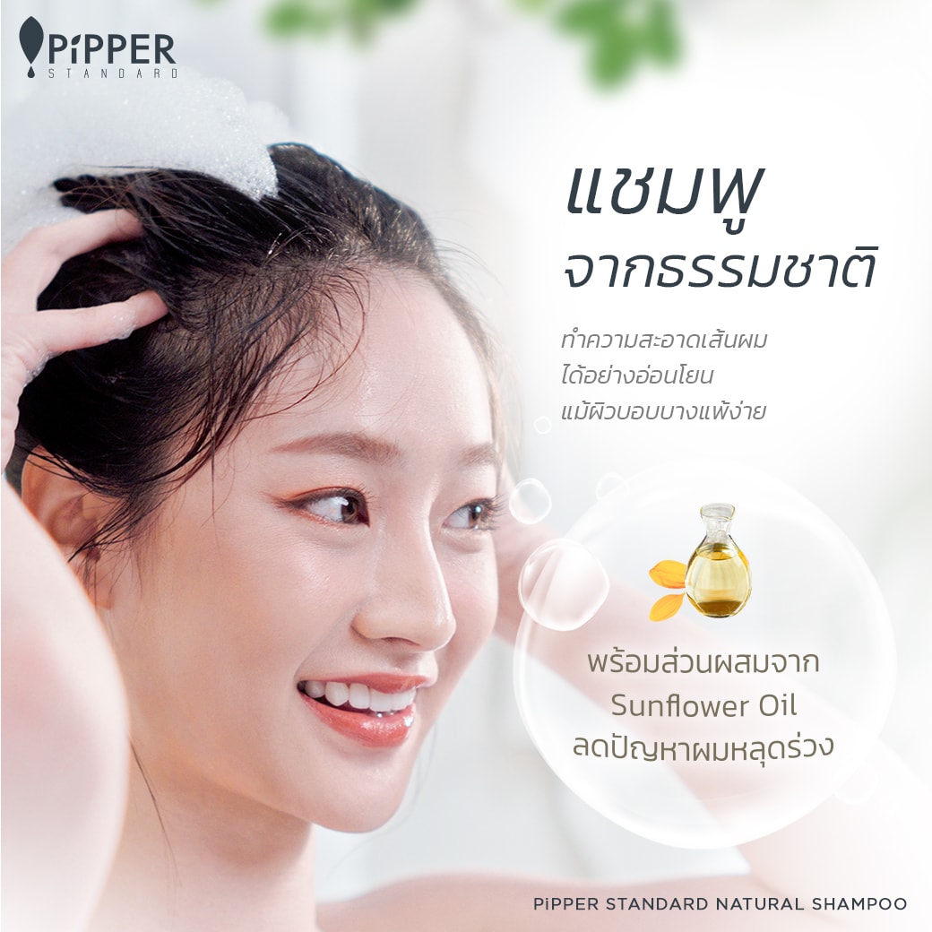 การเลือกแชมพู ที่เหมาะสมกับสภาพหนังศีรษธ จะช่วยให้คุณบรรเทาปัญหาสภาพหนังศีรษะเสียสมดุล “พิพเพอร์ สแตนดาร์ด เนเชอรัล แชมพู” ผลิตภัณฑ์ทำความสะอาดสำหรับเส้นผมและหนังศีรษะที่เหมาะกับทุกสภาพผิว แม้คนที่ผิวบอบบางแพ้ง่าย ปราศจากสารเคมีอันตราย ไม่ทำให้เกิดการระคายเคือง อักเสบบนหนังศีรษะ ลดความมันของหนังศีรษะ ลดผมร่วง ผมมัน และยังมีสารสกัดที่ช่วยคืนความชุ่มชื้นให้กับหนังศีรษะ ด้วย วิตามินอีจากดอกทานตะวัน ที่จะทำให้เส้นผมและ.หนังศีรษะให้ชุ่มชื้น แข็งแรงขึ้น ลดความเปราะบางและการหักง่ายของเส้นผม
